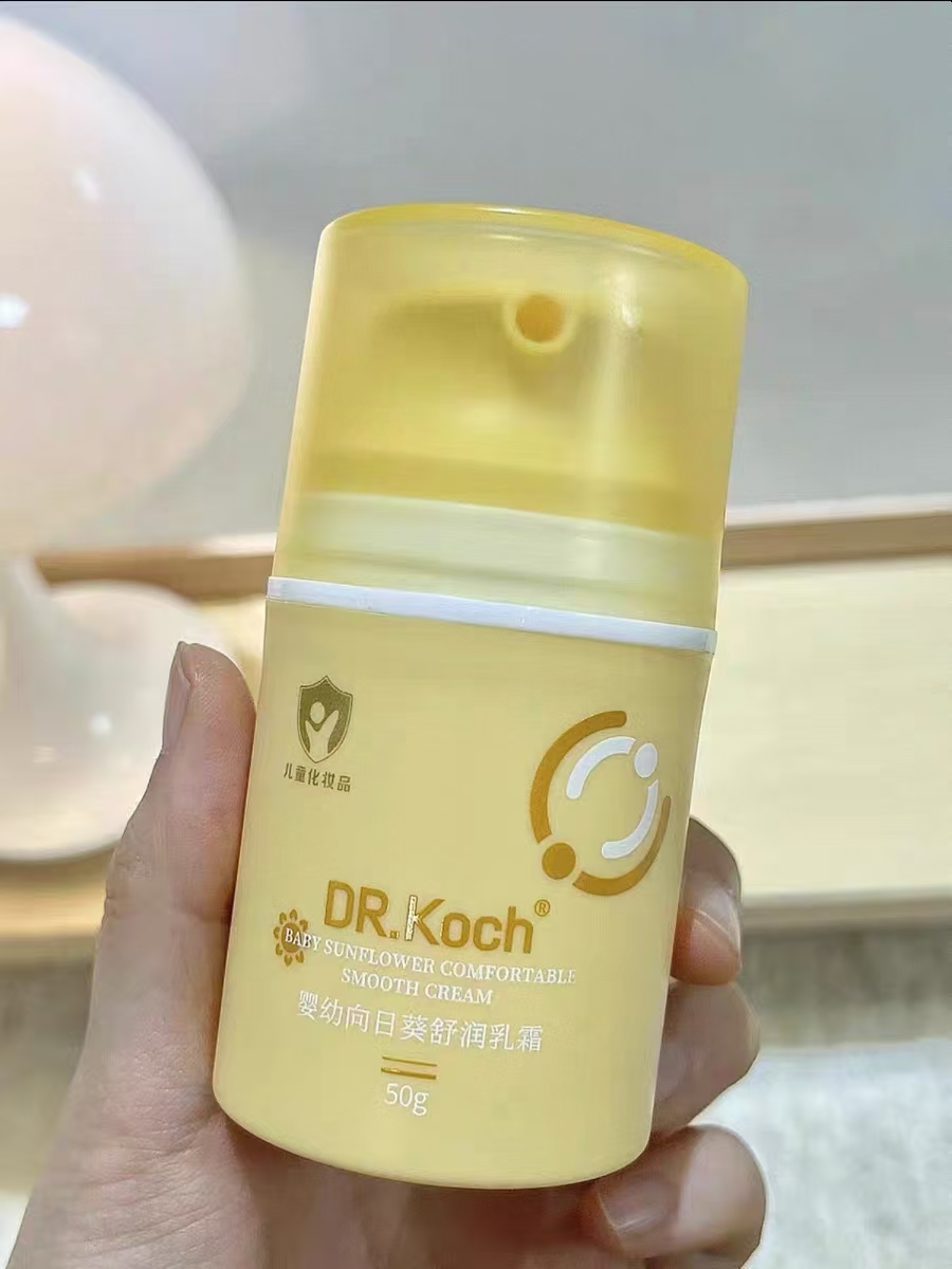 Dr.koch 科赫婴幼向日葵舒润乳霜",是一款专为 0-12 岁婴幼儿设计的护肤产品。通过国家药监局儿童化妆品备案,获得了 "小金盾" 专属标识(中国儿童化妆品的官方安全认证)。